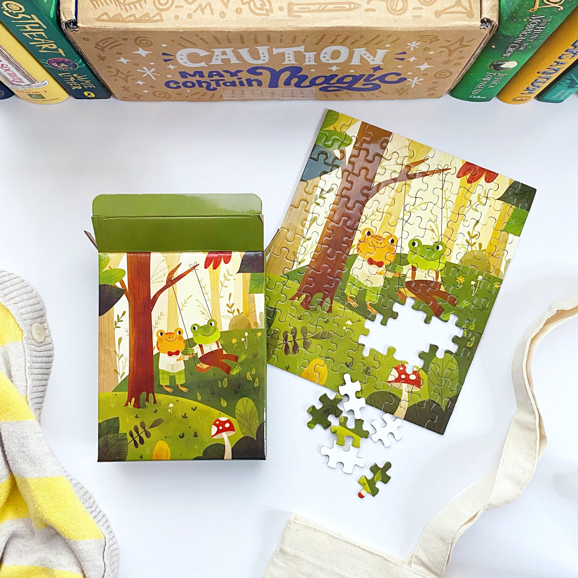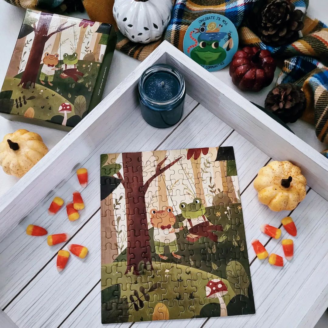 Communities can encompass an entire ecosystem or a simple friendship between two creatures! This 100-piece puzzle was inspired by our favorite amphibious friendship between Frog and Toad, as written by Arnold Lobel. Designed by Vanessa Port (@veepdoodles).