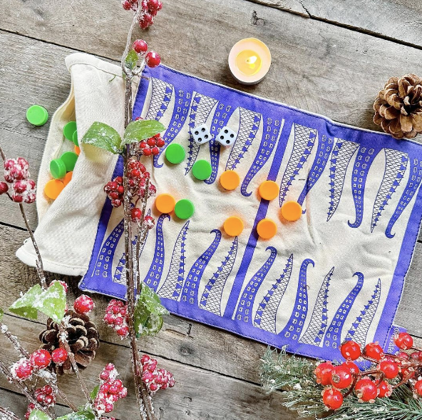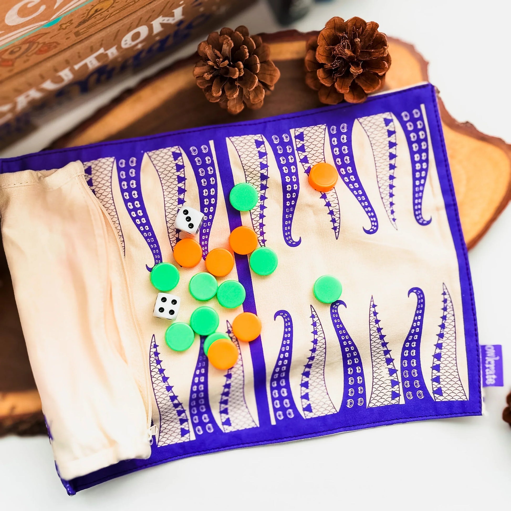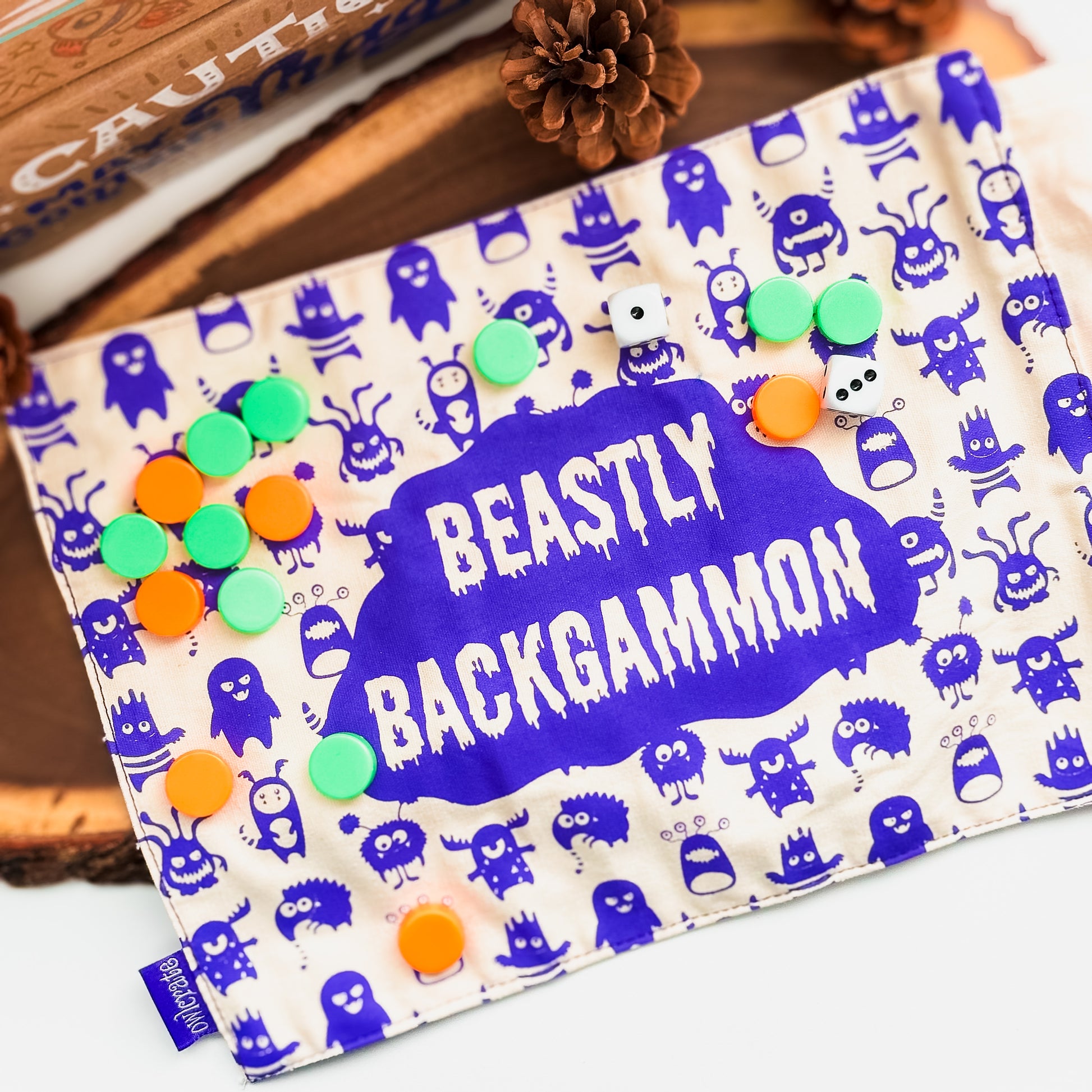 Practice your strategic thinking skills on the go with your new Beastly Backgammon fabric travel game. Design by OwlCrate