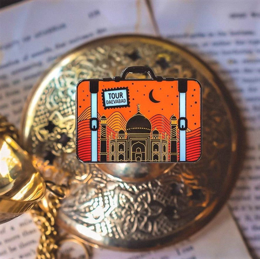 We find ourselves craving a tour of the magical kingdom of Daevabad in this City of Brass-inspired Literary Luggage enamel pin from Hey Atlas Creative.