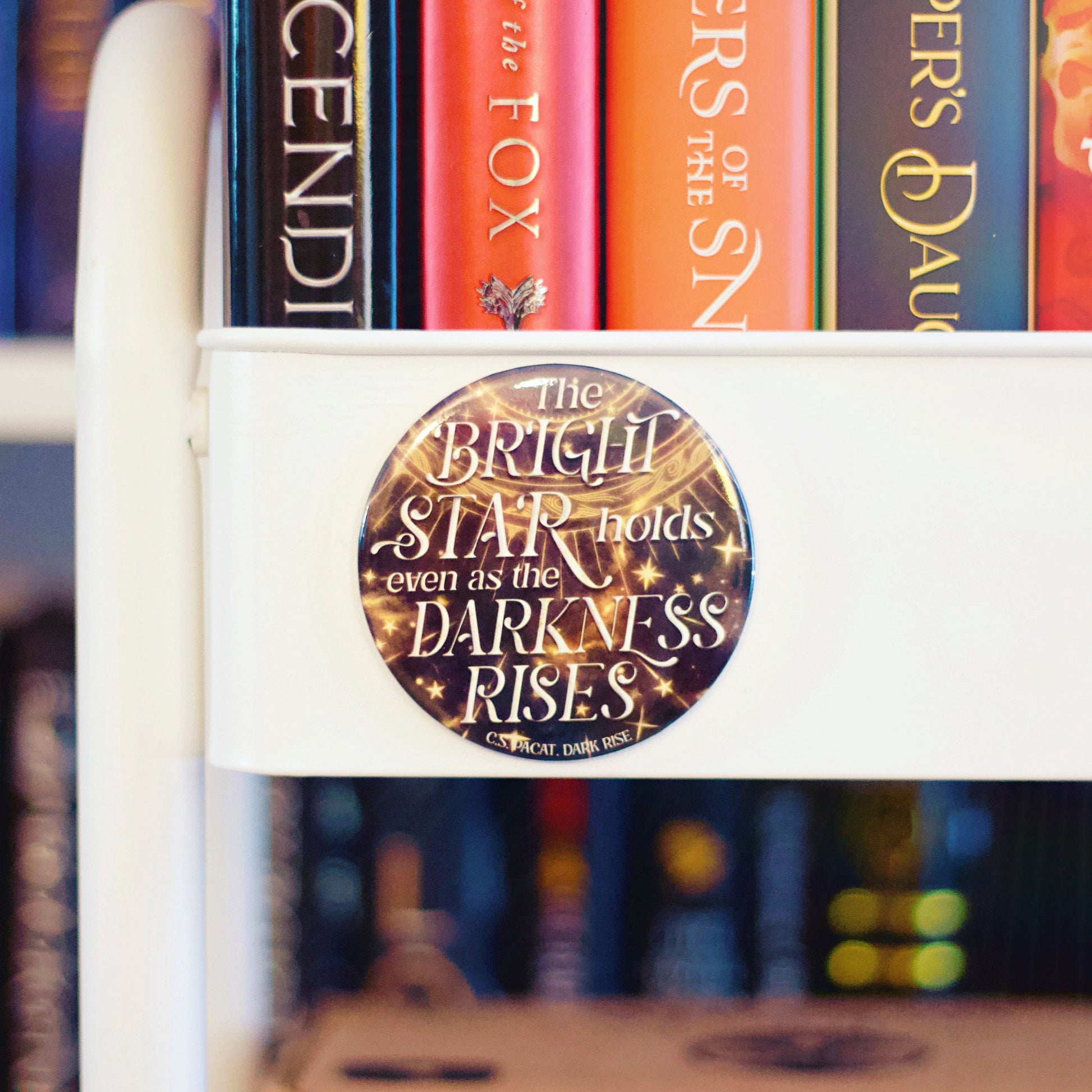 Add a bit of bookishness to your fridge or locker with this lovely Dark Rise magnet designed by Blanca Design!