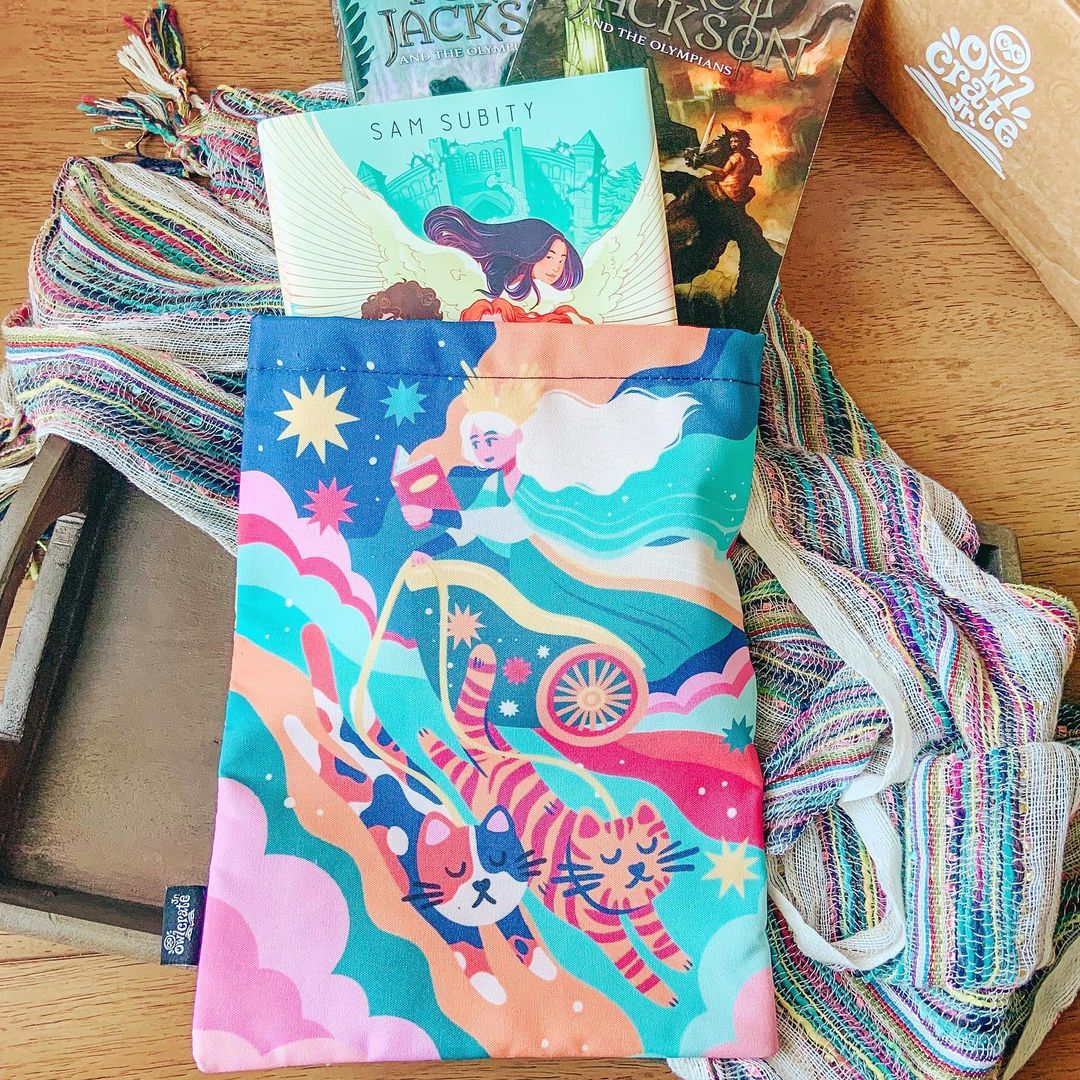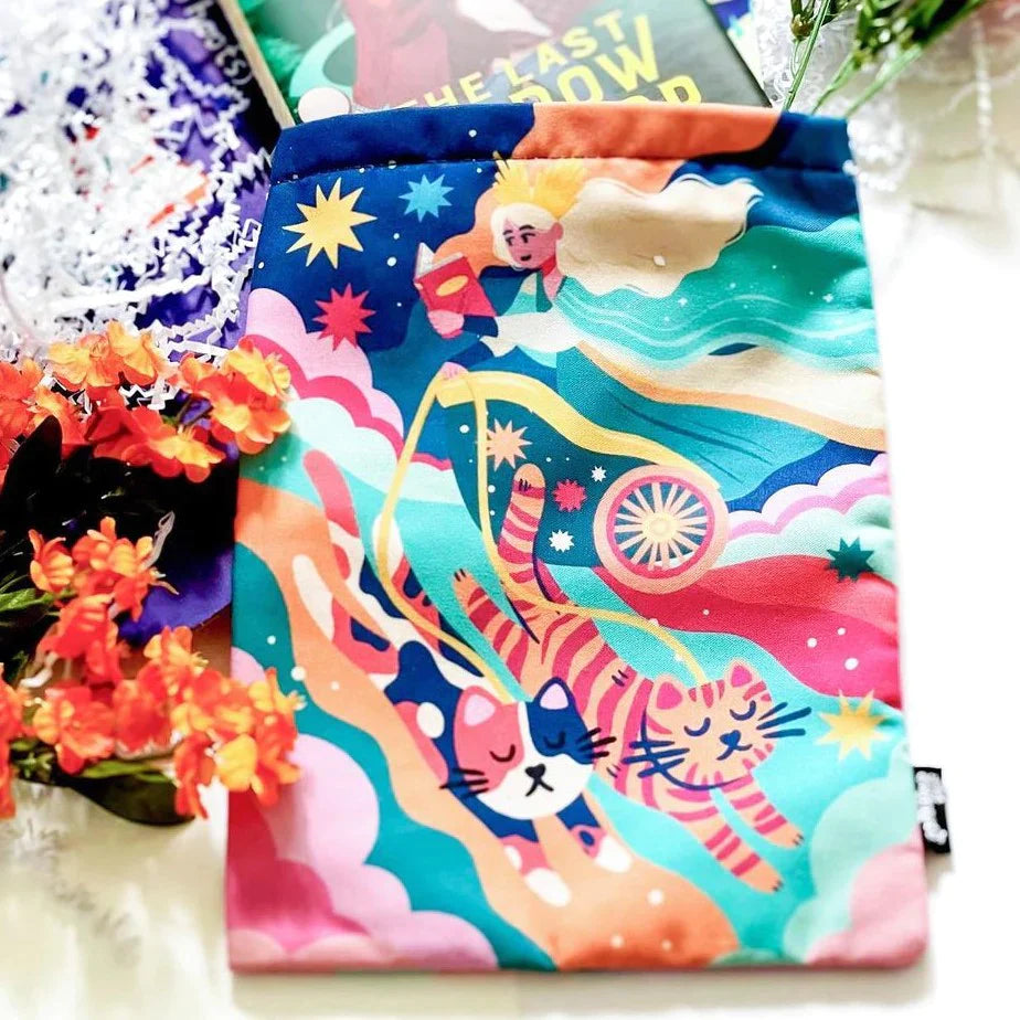 Let Freya — Norse Goddess of blessings, love, and fertility — and her trusty chariot cats keep your reading material in divine condition with this awesome book sleeve! Designed by EJ Chong.