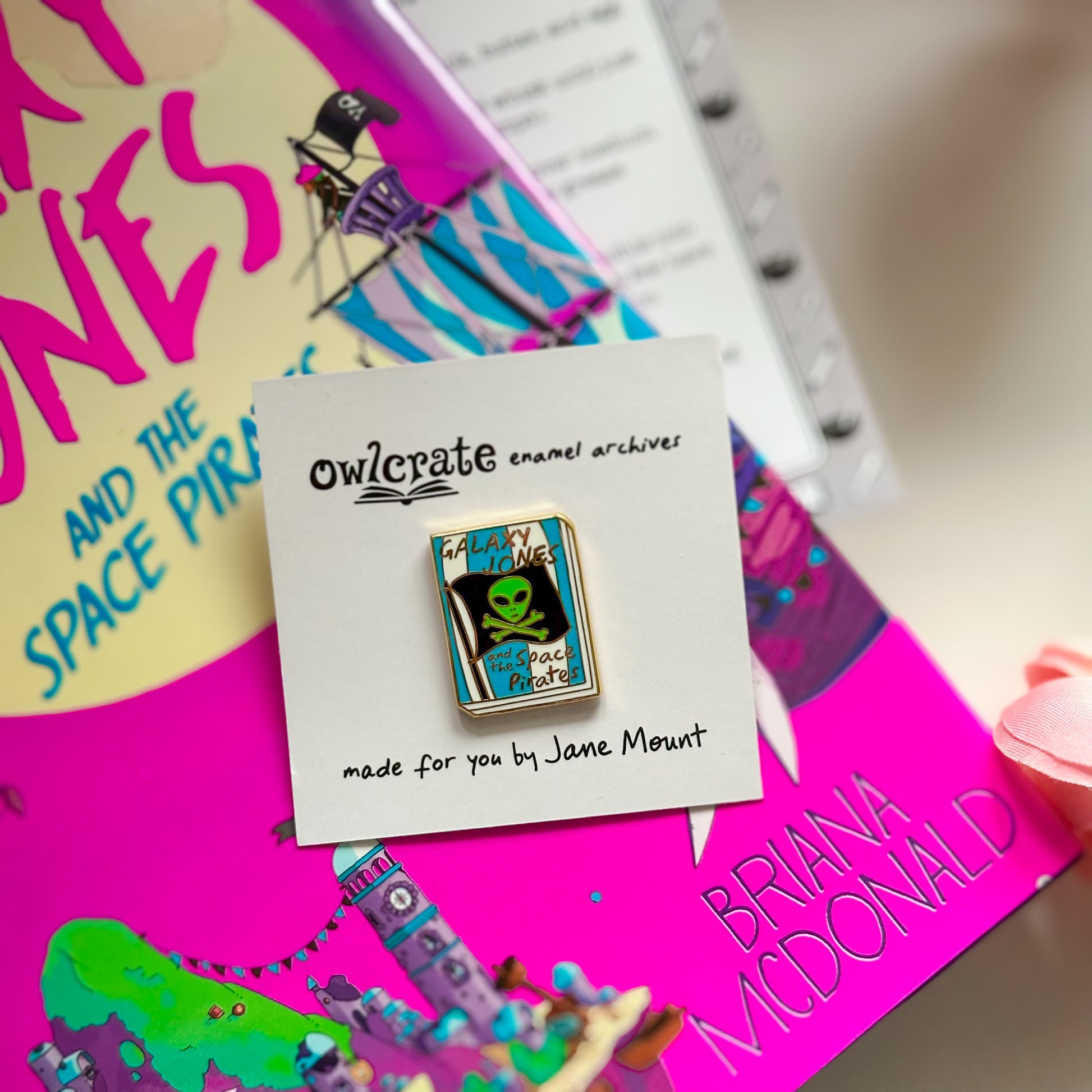 OwlCrate Jr Enamel Archives Pin Collection featuring Galaxy Jones and the Space Pirates (designed by Jane Mount)