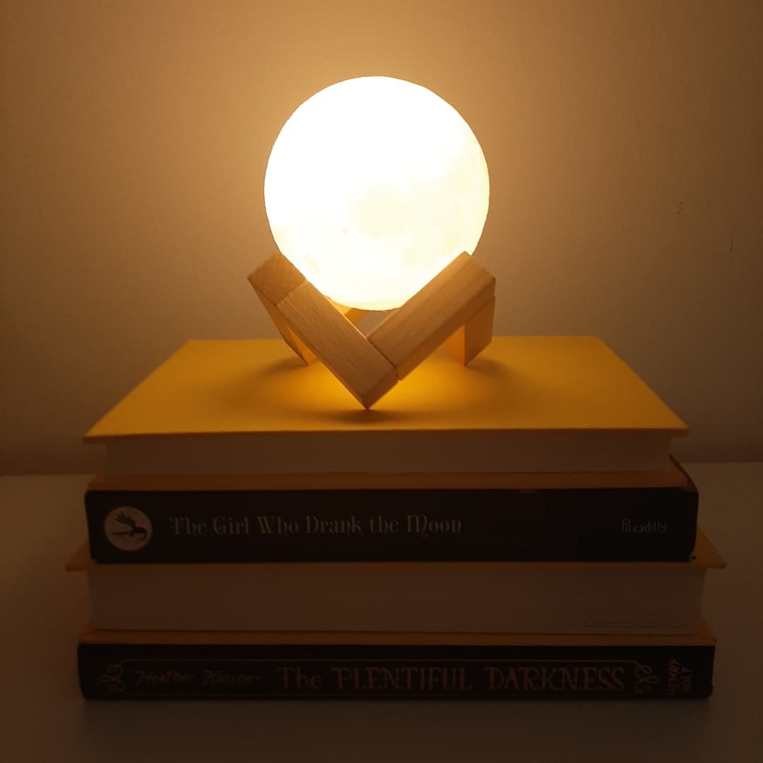 Banish the plentiful darkness with this beautiful 3D-printed LED moon lamp and stand, which lights up in three glowing colours at the touch of a button. This lovely lunar lights give off the most mesmerizing warm glow and make a perfect nightlight. You can choose your favorite of three colors options with the tap of a finger, and there are no cords so you can easily put it anywhere your heart desires. USB charger and wooden stand included.