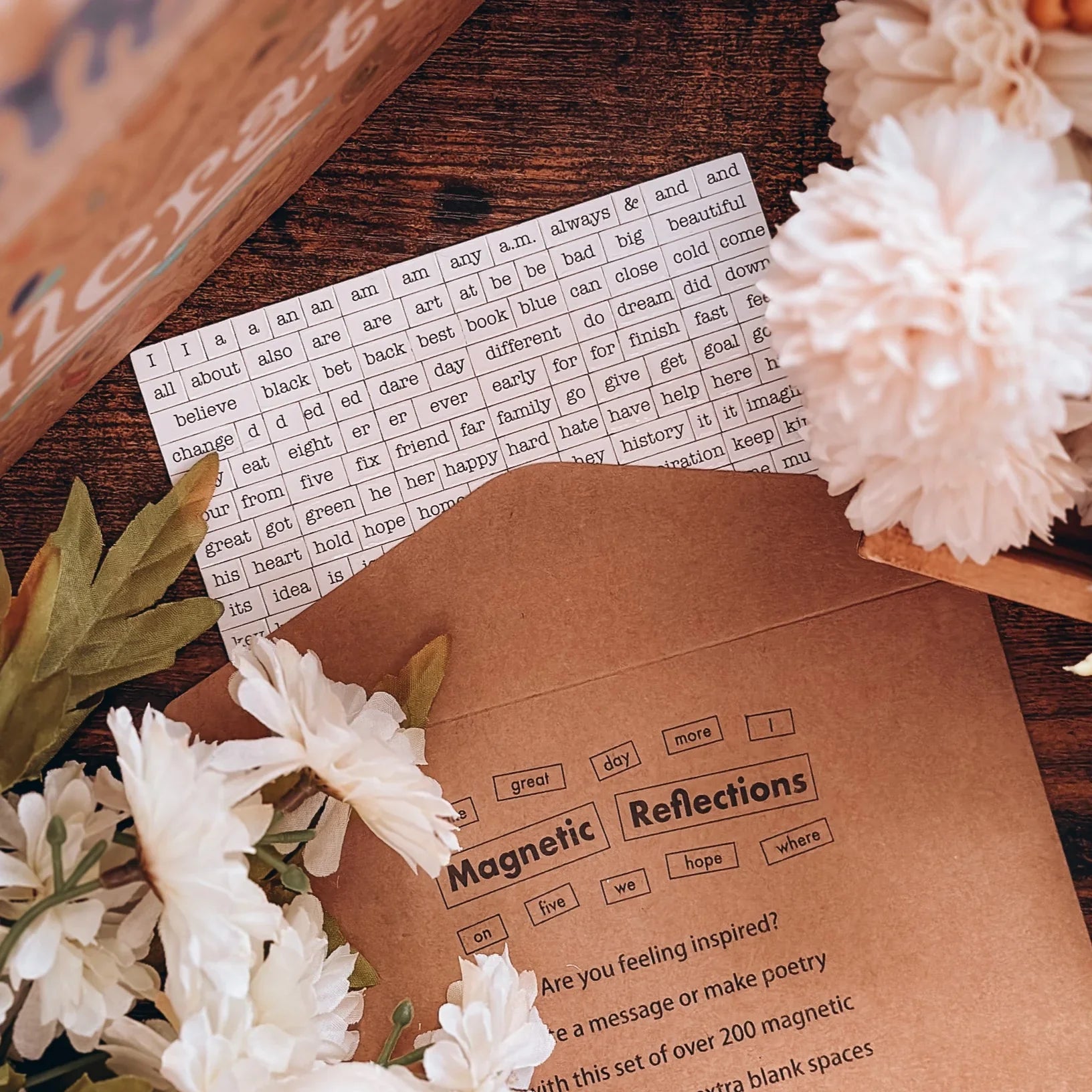 Your new Magnetic Reflections magnet set has over 200 words that are the perfect tool to self-reflect and express your creativity. Designed by OwlCrate Jr.