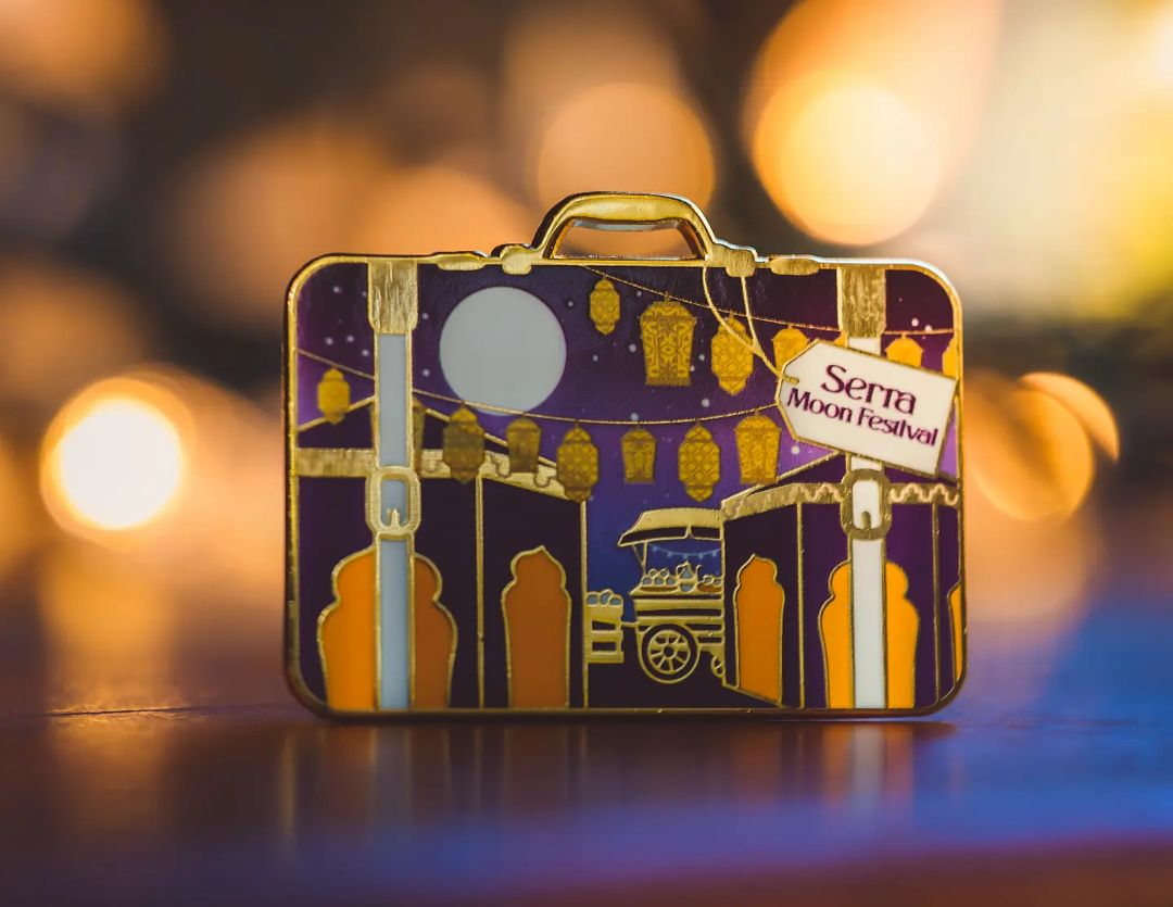 Inspired by the Serra Moon Festival in An Ember in the Ashes, the September 2022 collectible Literary Luggage Enamel Pin from artist Hey Atlas Creative has us craving mooncakes!
