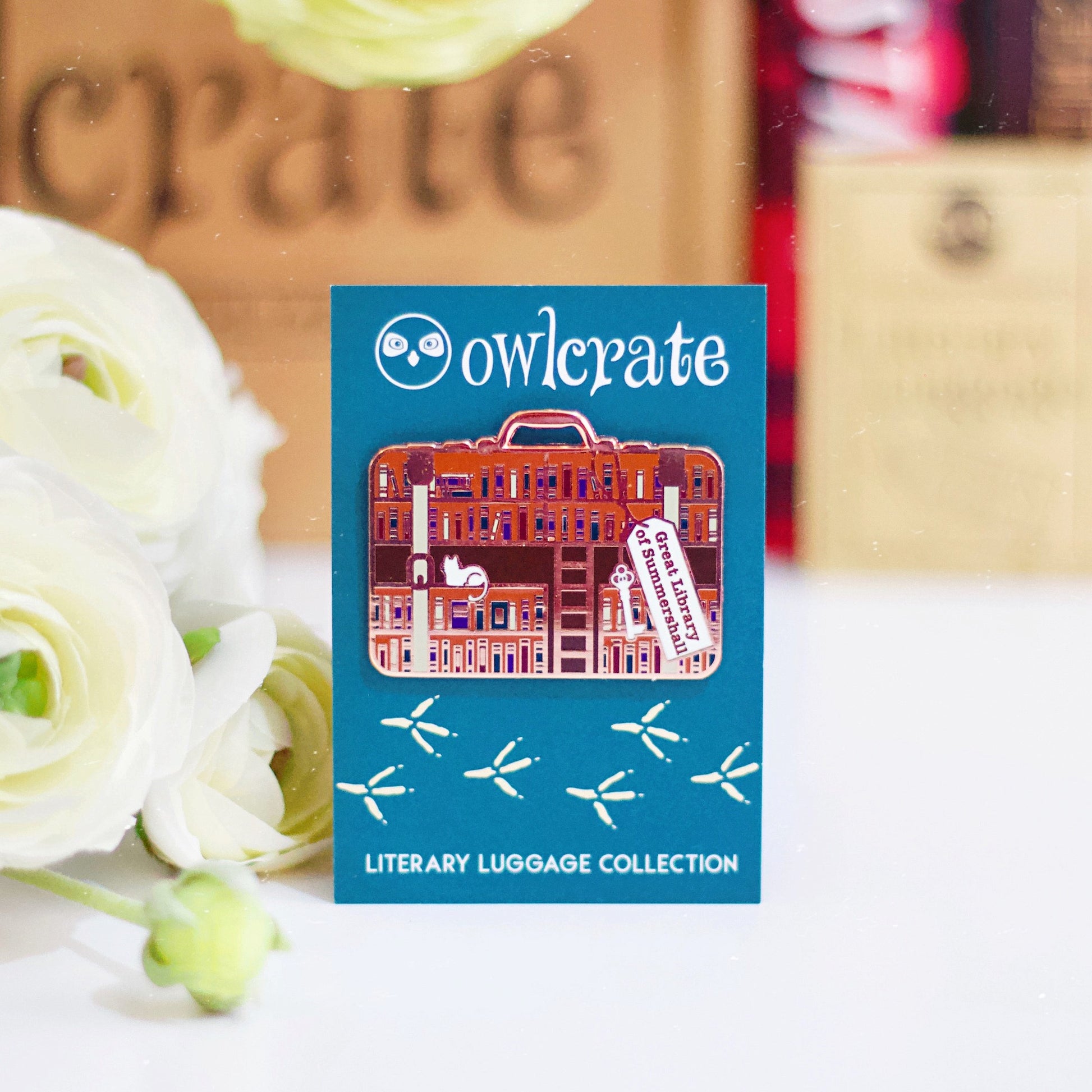 - Sorcery of Thorns-inspired Literary Luggage enamel pin (designed by Hey Atlas Creative)