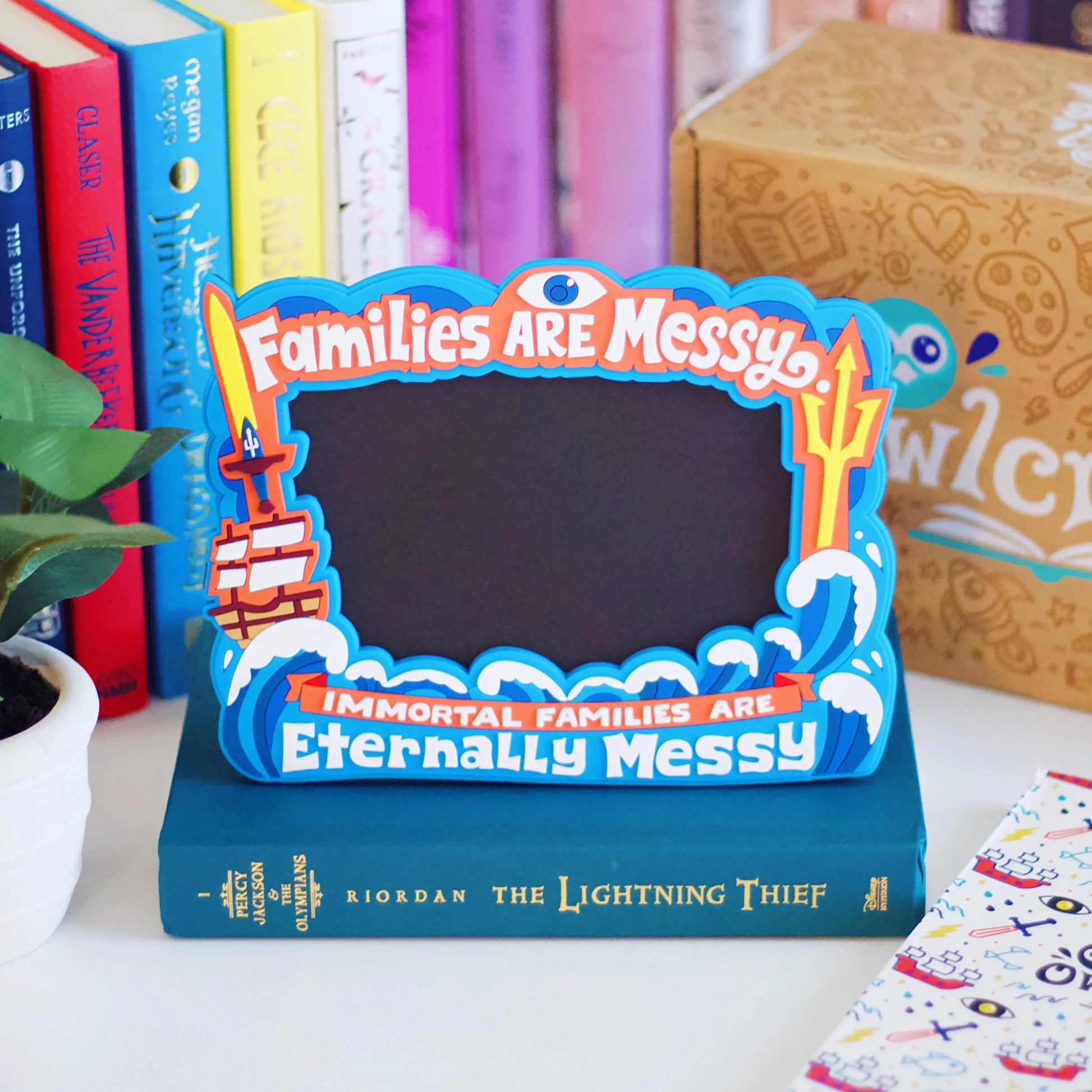 Perfect for all fans of the Percy Jackson series, this frame captures the spirit of Camp Half-Blood. It holds a 4" x 6" photo and features the heartfelt quote: "Families are messy. Immortal families are eternally messy." Whether it’s a snapshot of your own heroic adventures or a moment with your mortal family, this frame adds a mythical charm to any room.