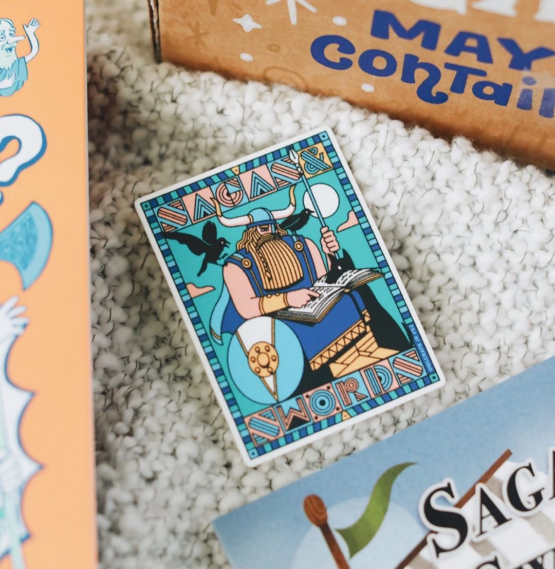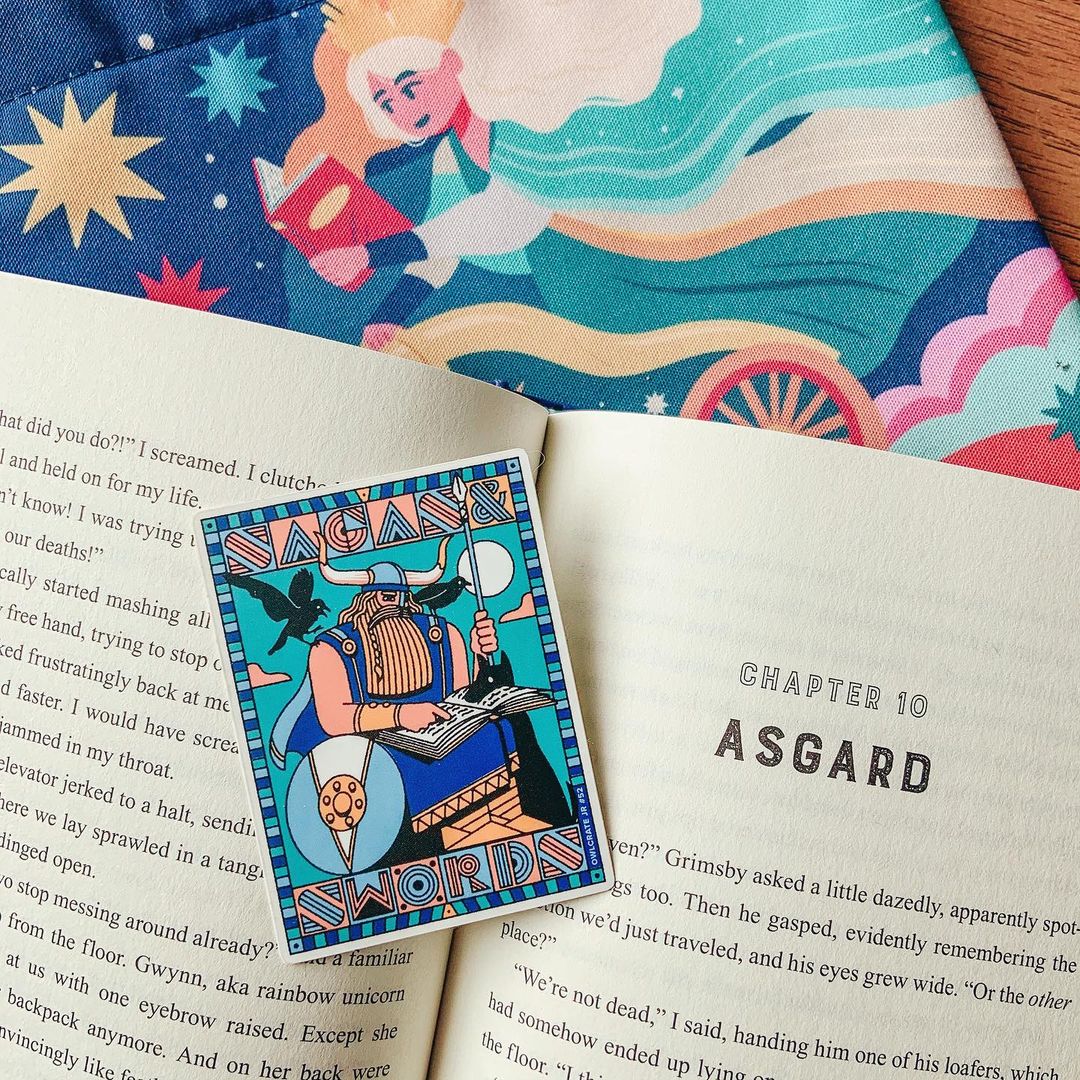 Unleash the power of mythology with this stunning 'Sagas & Swords' sticker! Featuring an epic design of Odin in vibrant turquoise and blue hues, this sticker brings the legendary Norse god to life. Designed by ToucanTango, this sticker is perfect for adorning notebooks, laptops, water bottles, or any surface that needs a touch of mythic adventure.