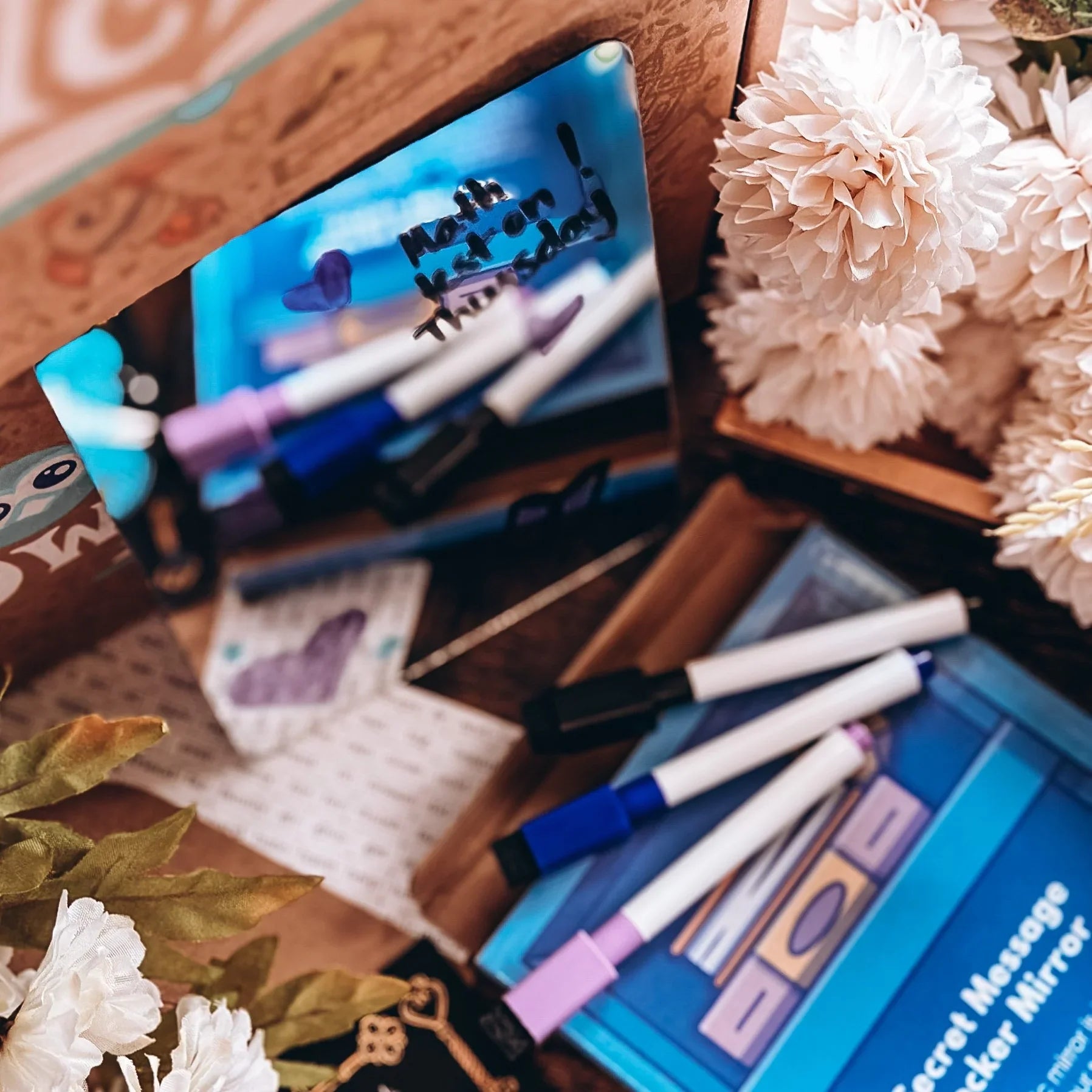 Transform your locker and check your reflection with this Secret Message Locker Mirror, complete with a set of dry-erase markers for writing quick (and secret) notes! Package designed by Michelle Gray.