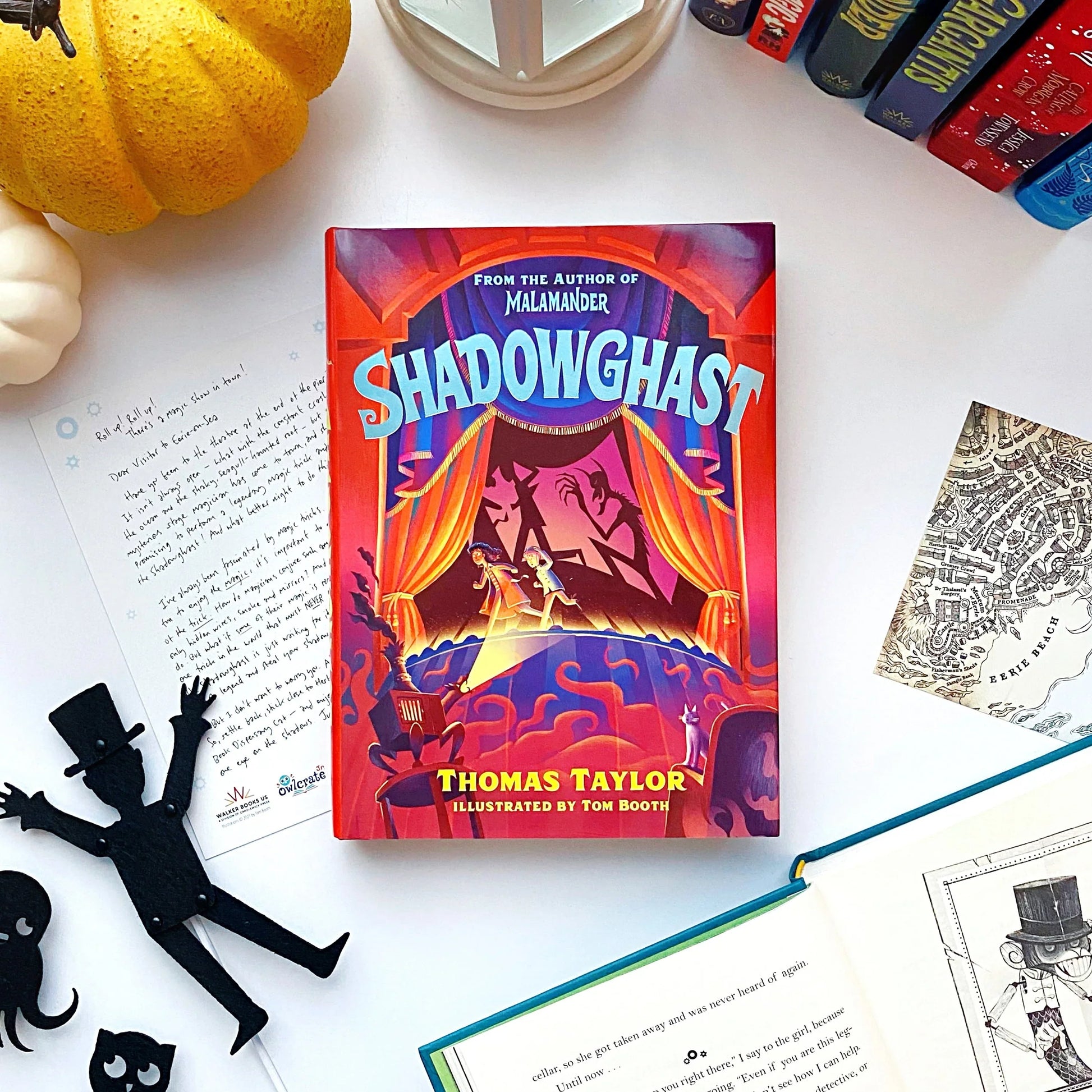 This listing is for an OwlCrate Jr exclusive signed edition of Shadowghast by Thomas Taylor. This is the third book in The Legends of Eerie-on-Sea series.