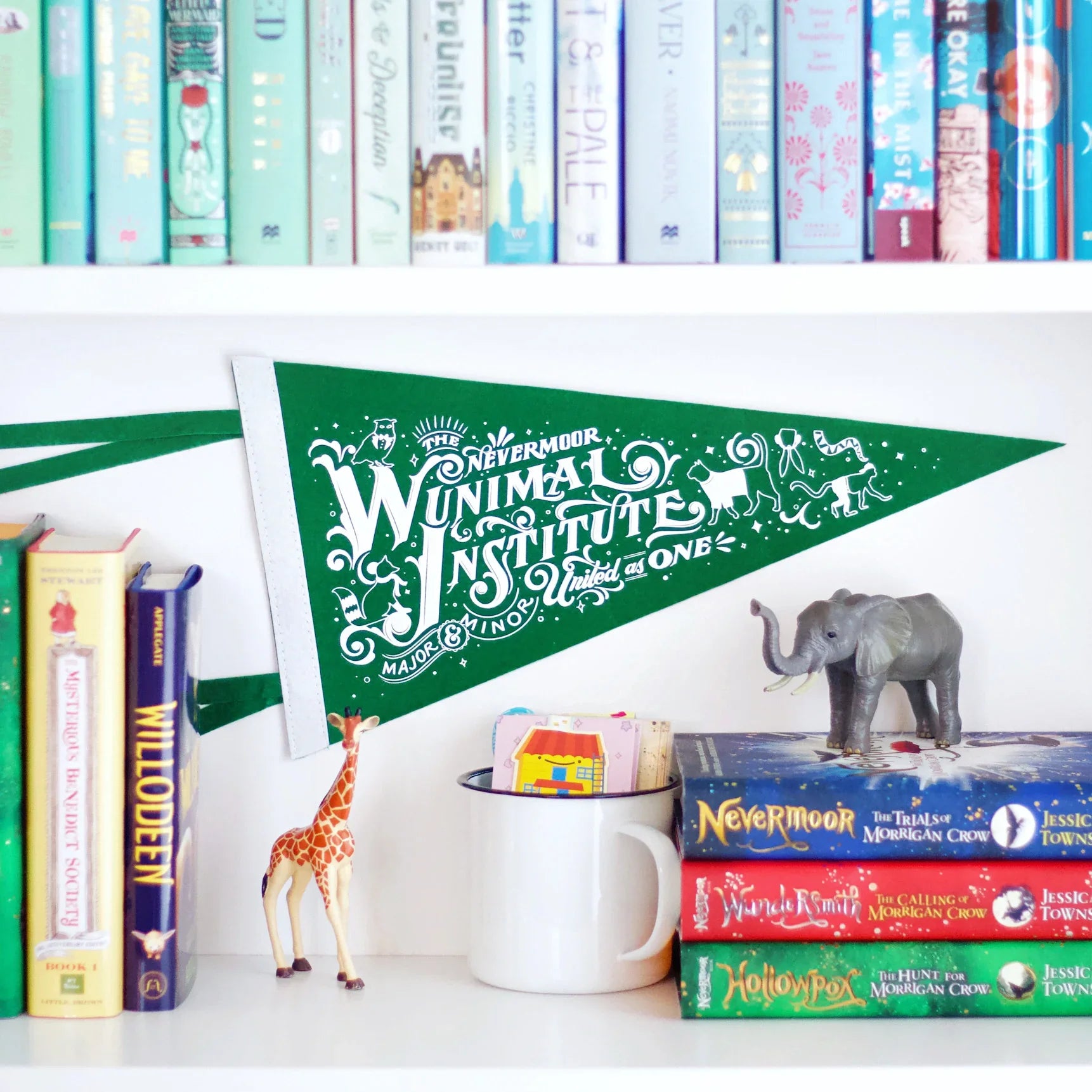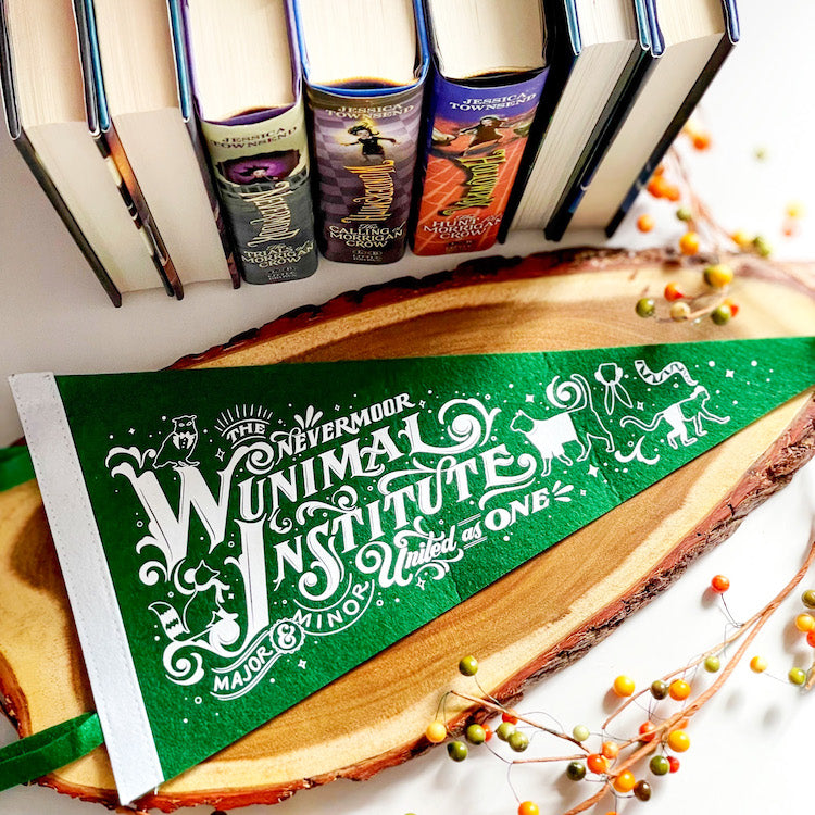 Show your support for Nevermoor’s Wunimal society and citizens with this felt pennant designed by KDP Letters. This is magical middle grade series created by NYT Bestselling author Jessica Townsend, and this felt flag is a perfect accessory to hang near your collection of Nevermoor stories.